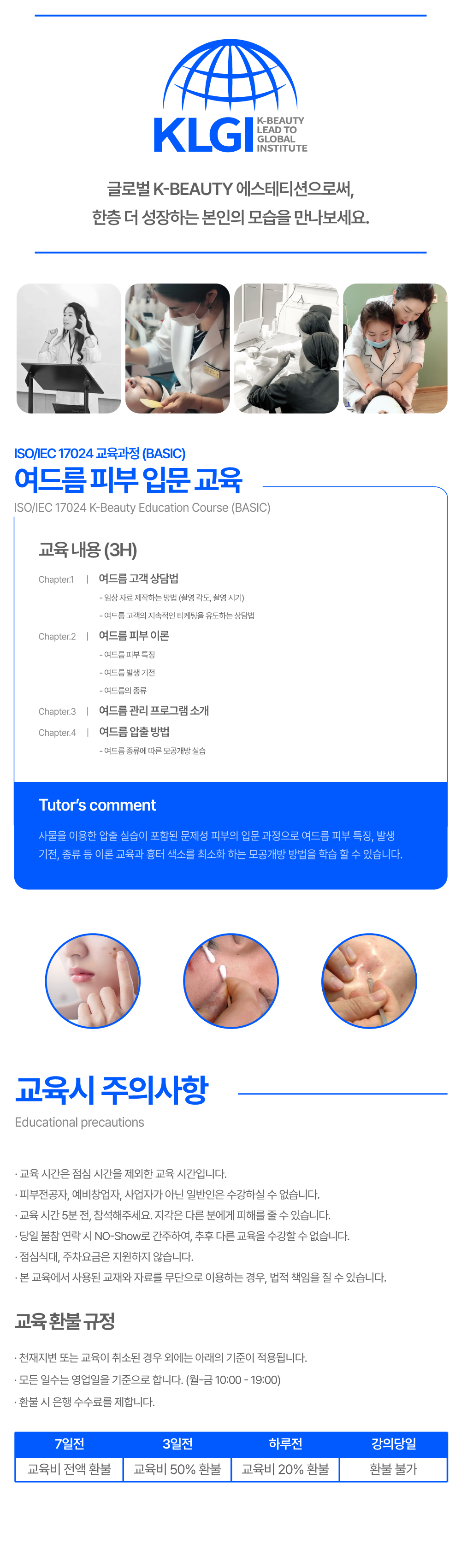 KLGI에서 시행하는 ISO 17024 피부 자격증은 국내 뿐 아니라, 전 세계 163개국에서 인증되는 자격증으로, 글로벌 경쟁력을 더욱 강화시킬 수 있습니다.