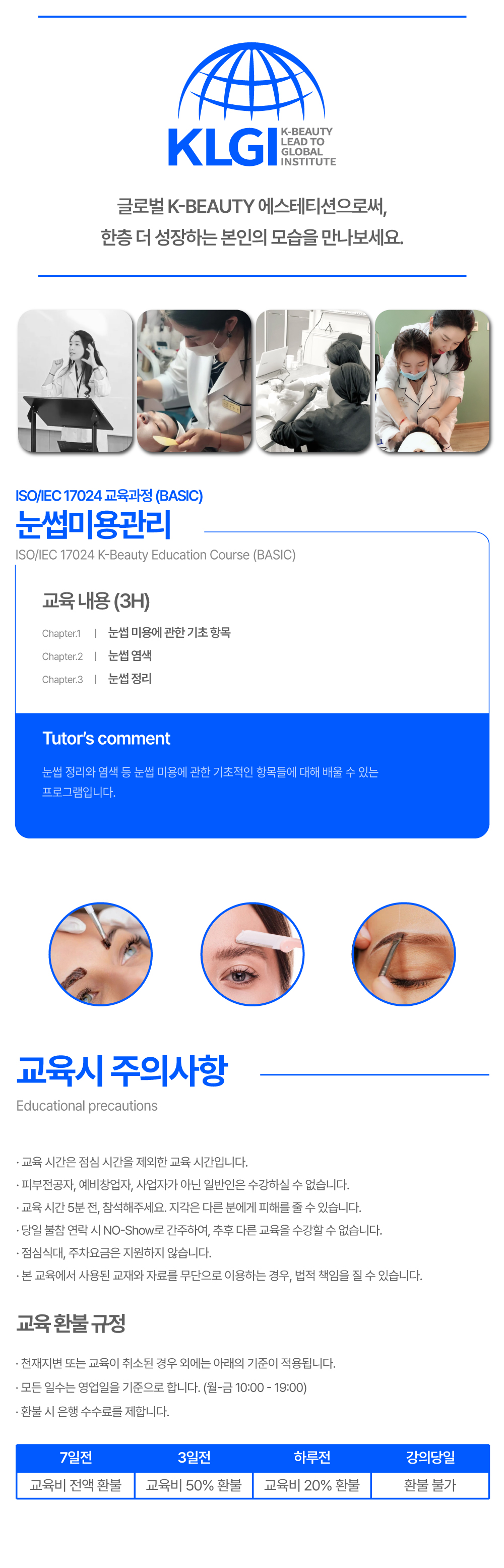 눈썹 정리, 염색 등 눈썹 미용에 관한 기초 항목 교육