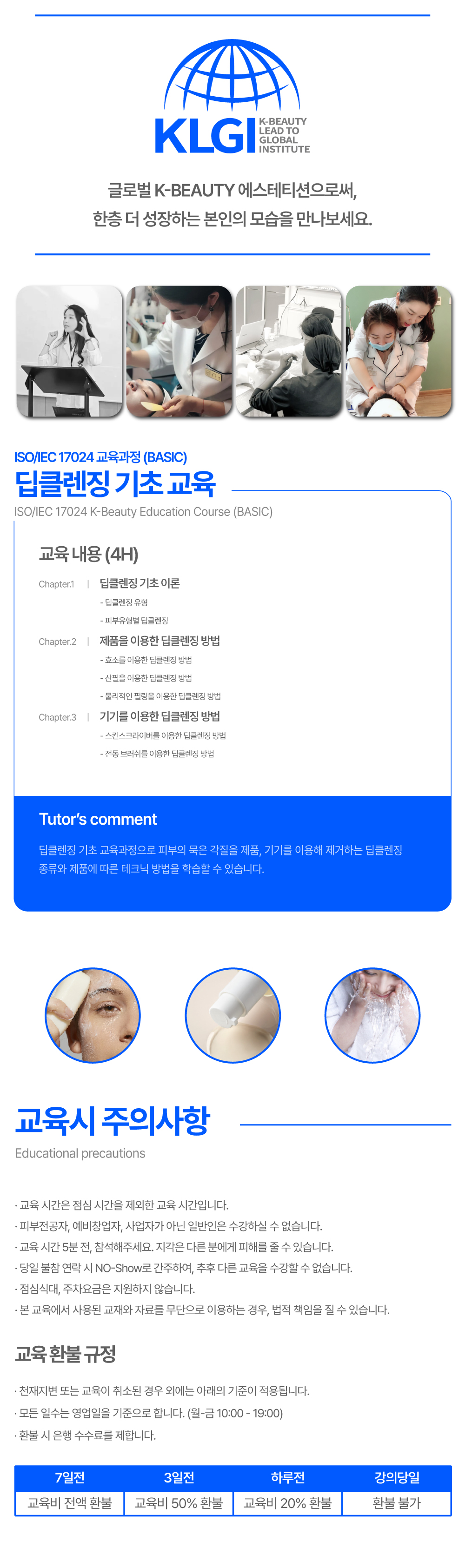 기기를 이용한 딥클렌징, 효소와 고마쥐, 스크럽 등의 제품을 활용한 딥클렌징 교육 프로그램