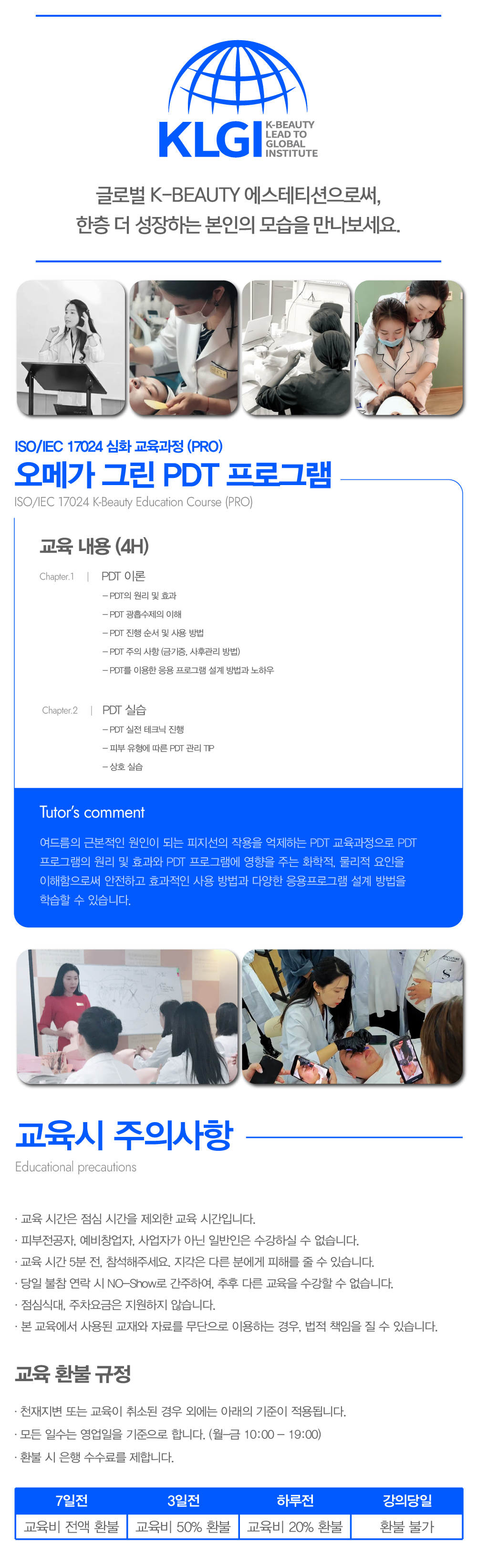 PDT 프로그램의 원리 및 효과와 PDT 프로그램에 영향을 주는 화학적, 물리적 요인을 학습하는 교육 프로그램